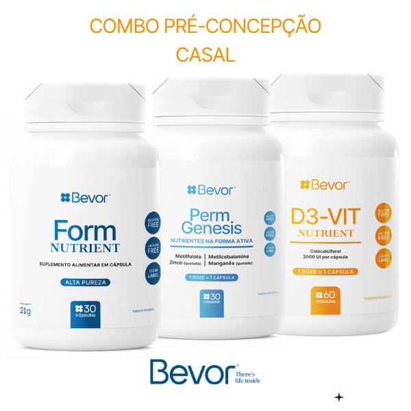 A Bevor desenvolveu este combo para apoiar casais que estão no início dos preparativos para engravidar, com foco em melhorar a fertilidade feminina e masculina de forma integrada, segura e baseada em ciência.