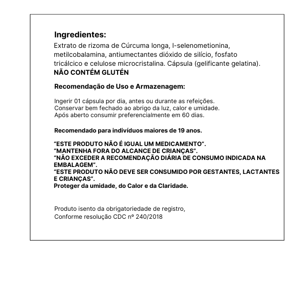 CURCUMINA + SELÊNIO + VITAMINA12.